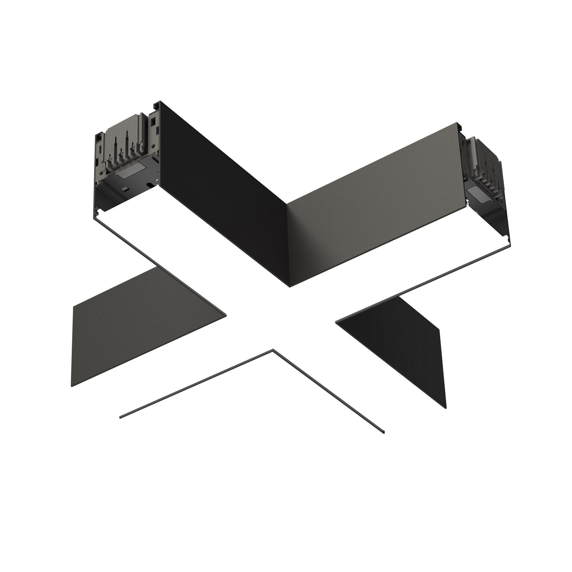 Spojka má tvar písmene X a je vyrobena z hliníku s černou práškovou povrchovou úpravou (RAL9005). Konstrukce je robustní a vhodná pro povrchovou i závěsnou montáž. Mikroprizmatický kryt zajišťuje příjemné a neoslňující světlo, které je ideální pro pracovní prostředí.