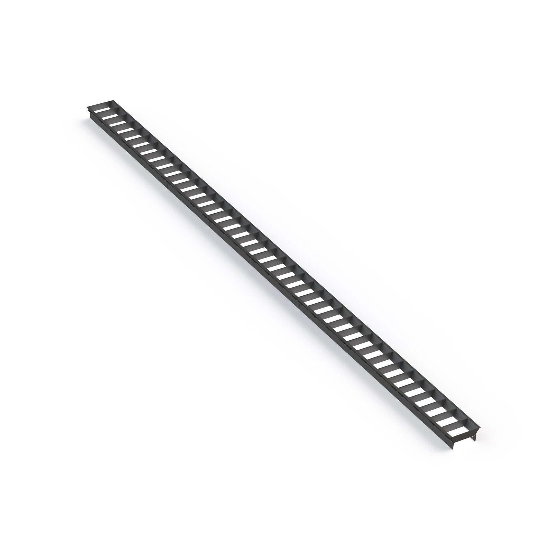Mřížka má úzký, podlouhlý tvar s pravidelnými otvory a je vyrobena v černém provedení. Konstrukce je navržena pro snadnou výměnu za původní kryt svítidla. Černá barva působí technicky a nenápadně, což umožňuje snadné začlenění do moderních interiérů i komerčních prostor.