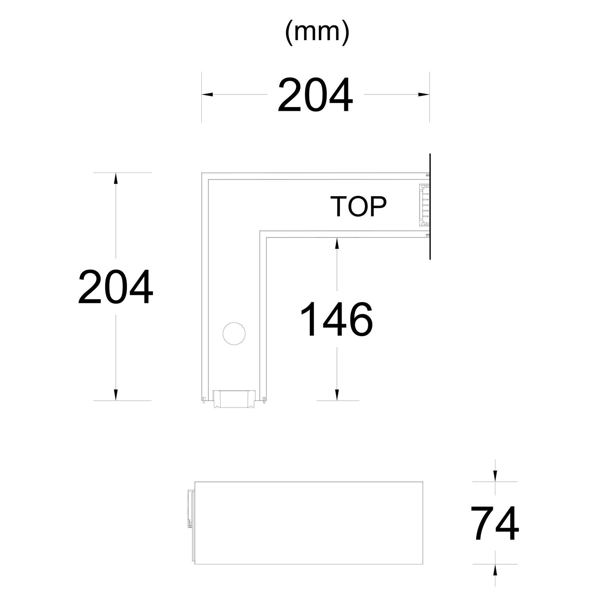 Rohová spojka má pravoúhlý tvar a je vyrobena z hliníku s černou práškovou povrchovou úpravou (RAL9005). Povrch je odolný a snadno se udržuje. Světelná část je vybavena mikroprizmatickým difuzorem, který zajišťuje rovnoměrné a neoslňující rozptýlení světla. Konstrukce umožňuje přisazenou i závěsnou montáž.