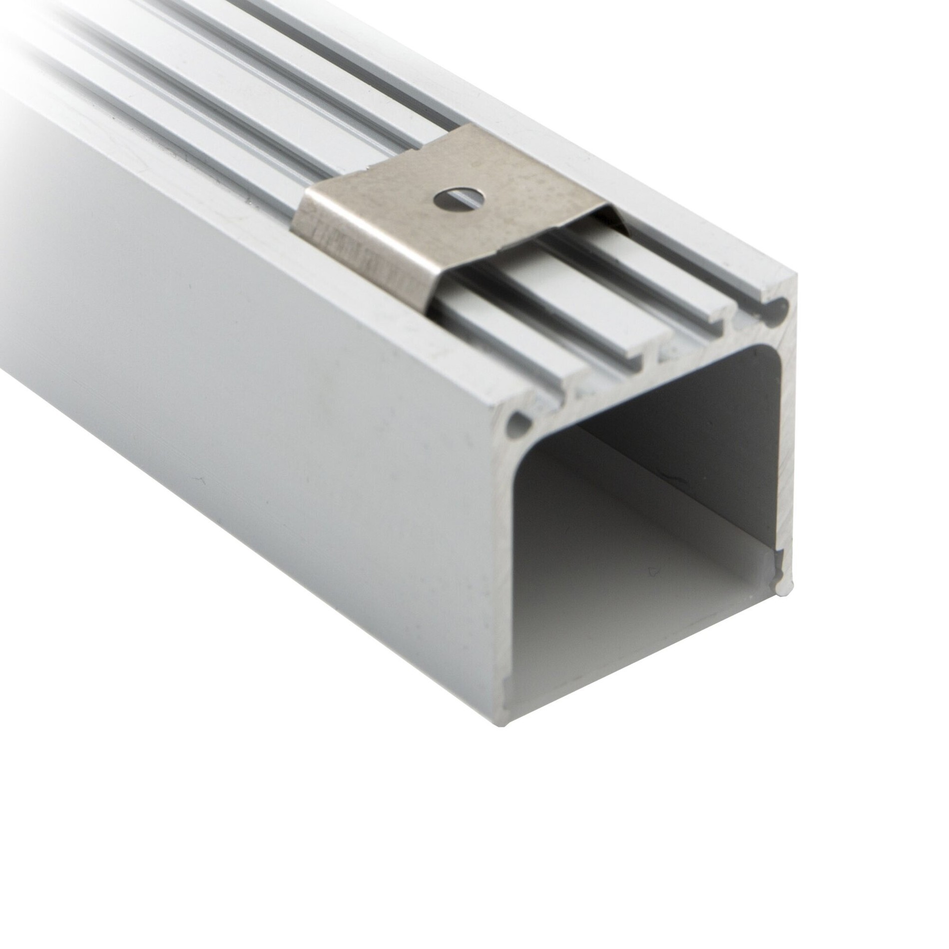 Klipy jsou vyrobeny z hliníku v přírodní barvě, což zajišťuje jejich odolnost a dlouhou životnost. Jednoduchý tvar umožňuje nenápadné uchycení profilu bez rušivých prvků.