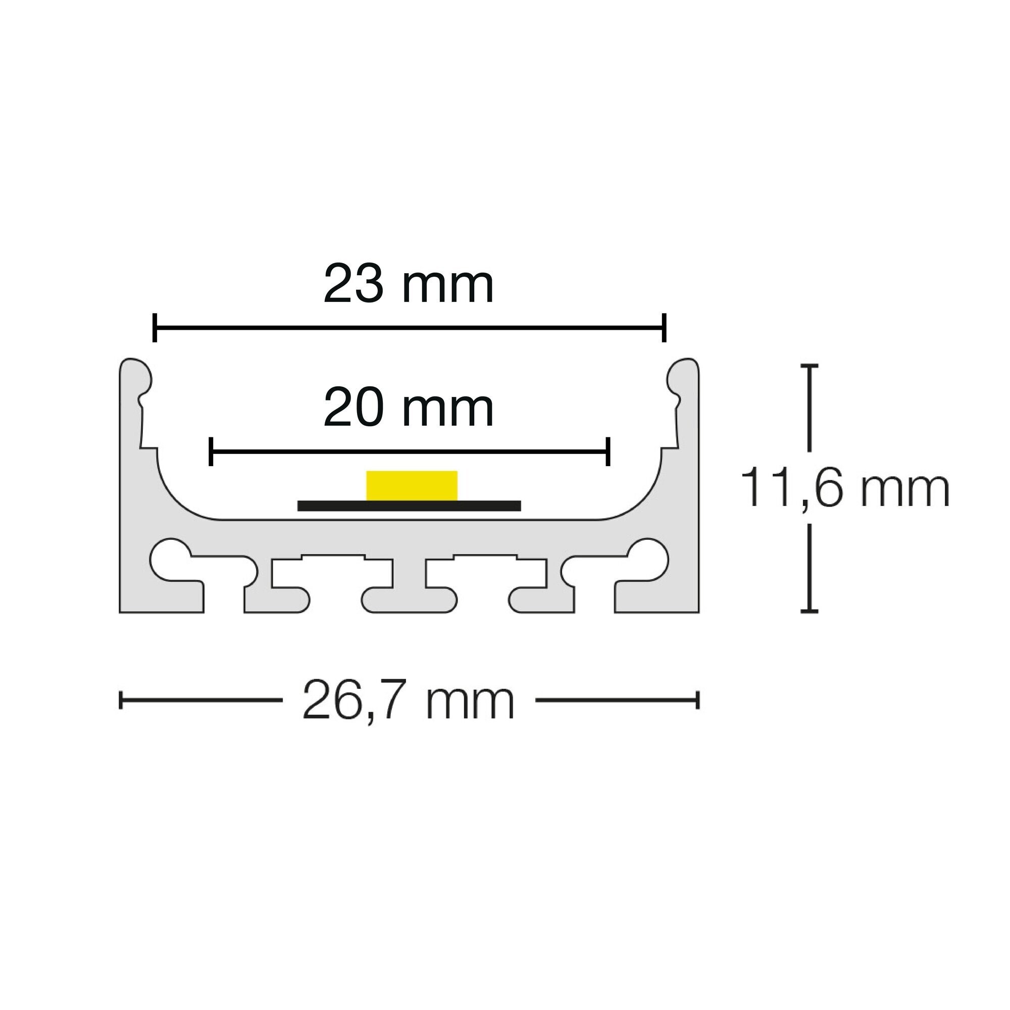 Profil je vhodný pro LED pásky do šířky 20 mm.