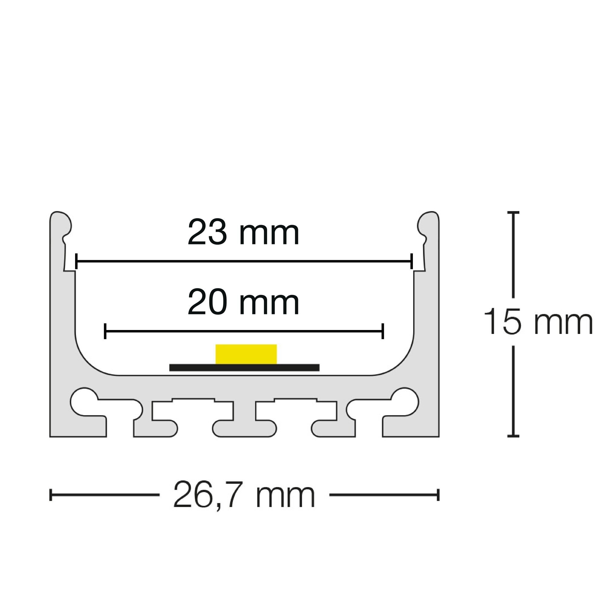 Profil je ideální pro instalace, kde je potřeba vytvořit nepřímé nebo zapuštěné osvětlení - například pod kuchyňské linky, do podhledů, výloh, schodišť nebo nábytku. Díky odolnosti vůči UV záření a možnosti použití v exteriéru je vhodný i pro venkovní aplikace, například na fasády nebo do pergol. Povrchová montáž je rychlá a jednoduchá, profil zároveň chrání LED pásek před mechanickým poškozením a zajišťuje jeho správné chlazení.