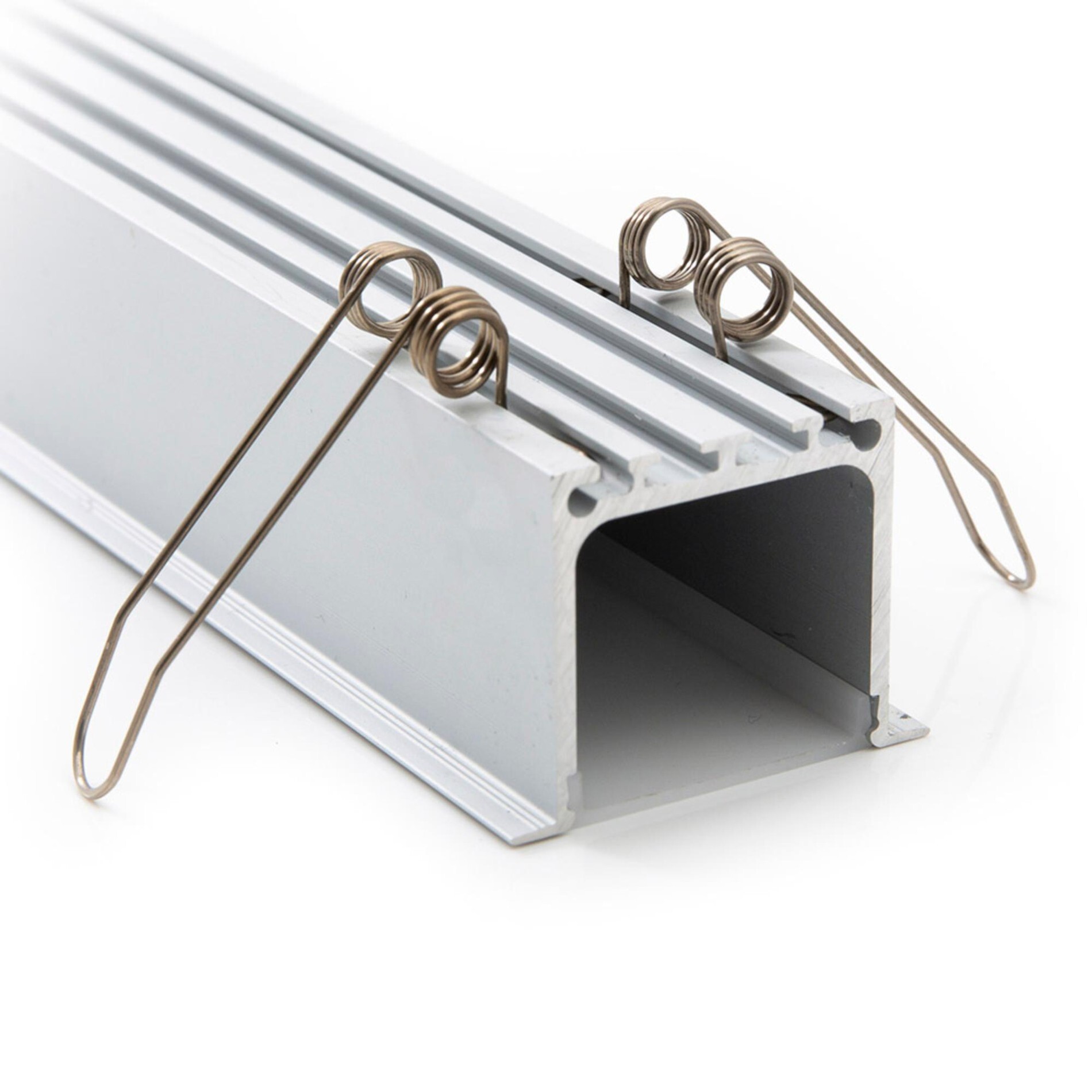 Tato sada čtyř pružin je určena pro zapuštěnou montáž profilů typu SLC B (B2, B4, B6). Umožňuje bezpečné a pevné uchycení profilů do podhledu nebo stropní konstrukce. Hlavní výhodou je jednoduchá instalace a spolehlivé držení profilu bez nutnosti viditelných šroubů.