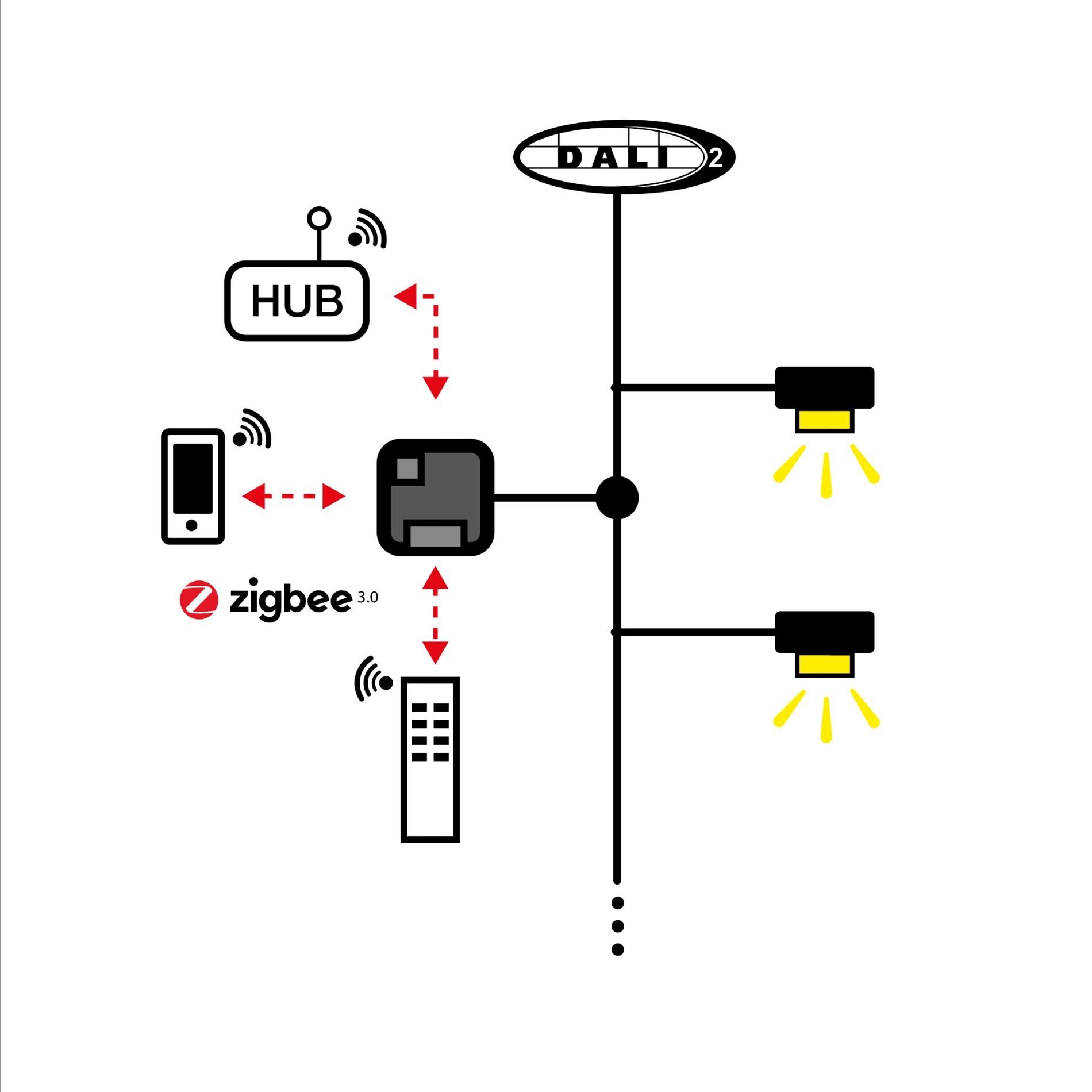 Převaděč je určen pro chytré řízení osvětlení v komerčních i rezidenčních objektech, kde je potřeba propojit Zigbee systém (například centrální jednotku chytré domácnosti) s DALI sběrnicí. Umožňuje ovládání jednotlivých DALI adres nebo skupin, včetně barevných režimů (jednobarevné, nastavitelné bílé, RGB, RGBW). Praktické využití najde při modernizaci osvětlení, rozšíření možností ovládání nebo při vytváření více ovládacích bodů v rámci jedné DALI linky.