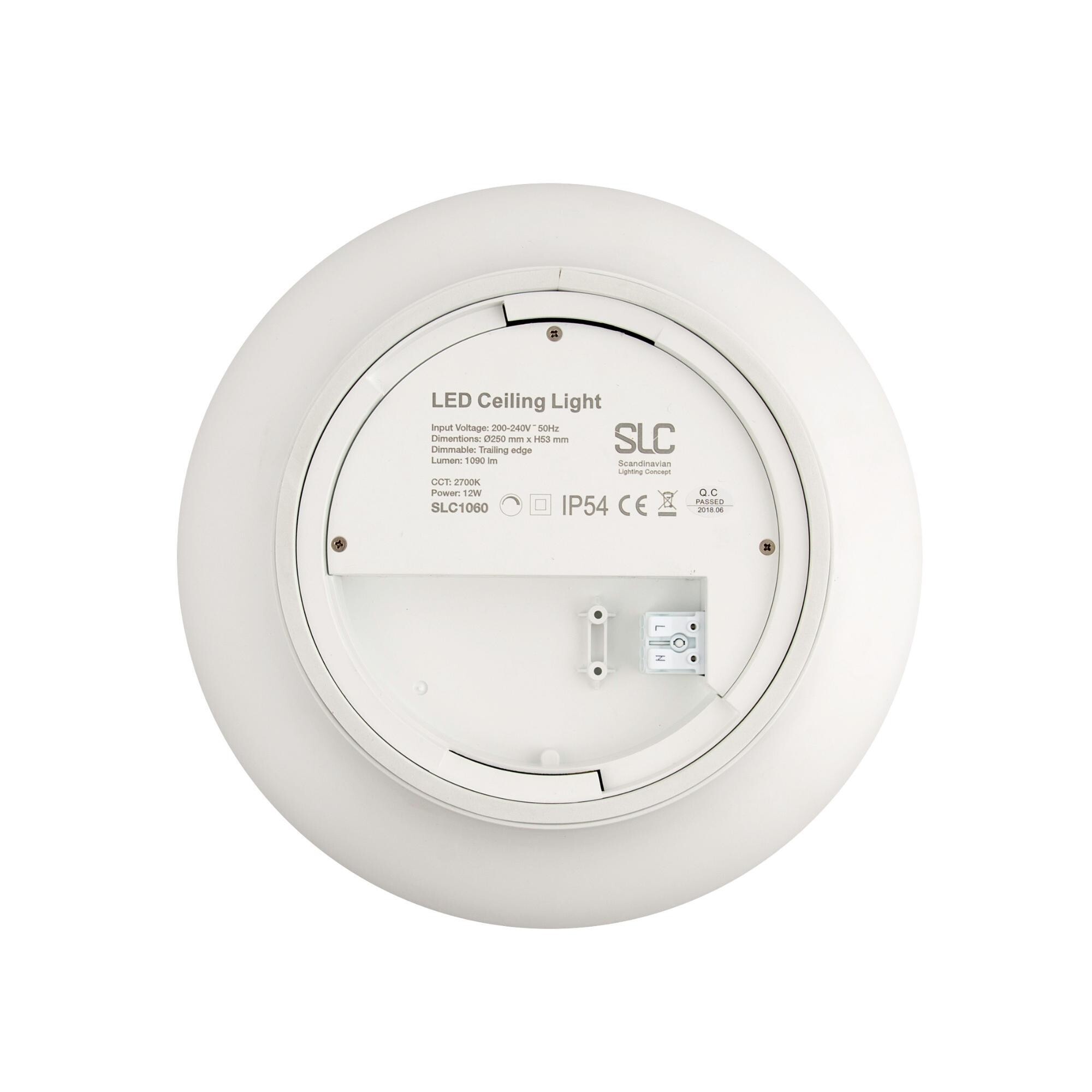 Výška: 53 mm, Šířka: 250 mm, Délka: 250 mm, Hmotnost: 530 g, Příkon: 12 W, Světelný tok: 1090 lm, Teplota barvy: 3000 K, Krytí: IP54, Úhel: 120 °, Napětí: 220-240V 50/60Hz, Průměr: 250 mm, Životnost: 50 000 h, Stmívatelné / řízení: fázové na sestupné hraně, Materiál: plast, Barva: bílá, Energetická třída: D, Index podání barev (Ra): Ra>80
