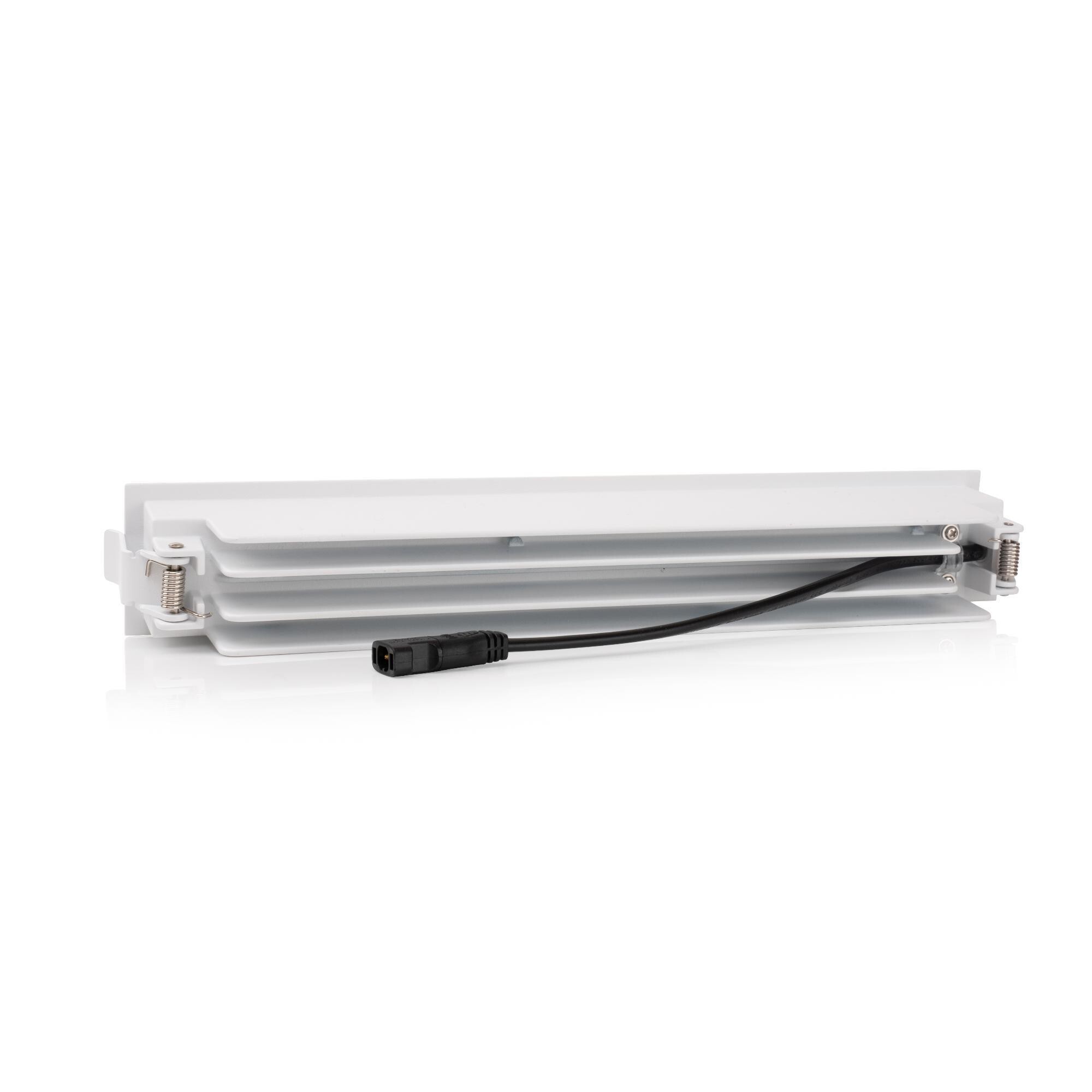Výška: 51 mm, Šířka: 45 mm, Délka: 280 mm, Hmotnost: 510 g, Příkon: 25 W, Světelný tok: 1653 lm, Teplota barvy: 3000 K, Krytí: IP20, Úhel: 36 °, Napětí: 220-240V, Životnost: 100 000 h, Stmívatelné / řízení: fázové na sestupné hraně, Barva: bílá, Energetická třída: D, Index podání barev (Ra): Ra>90, Proud: 700 mA