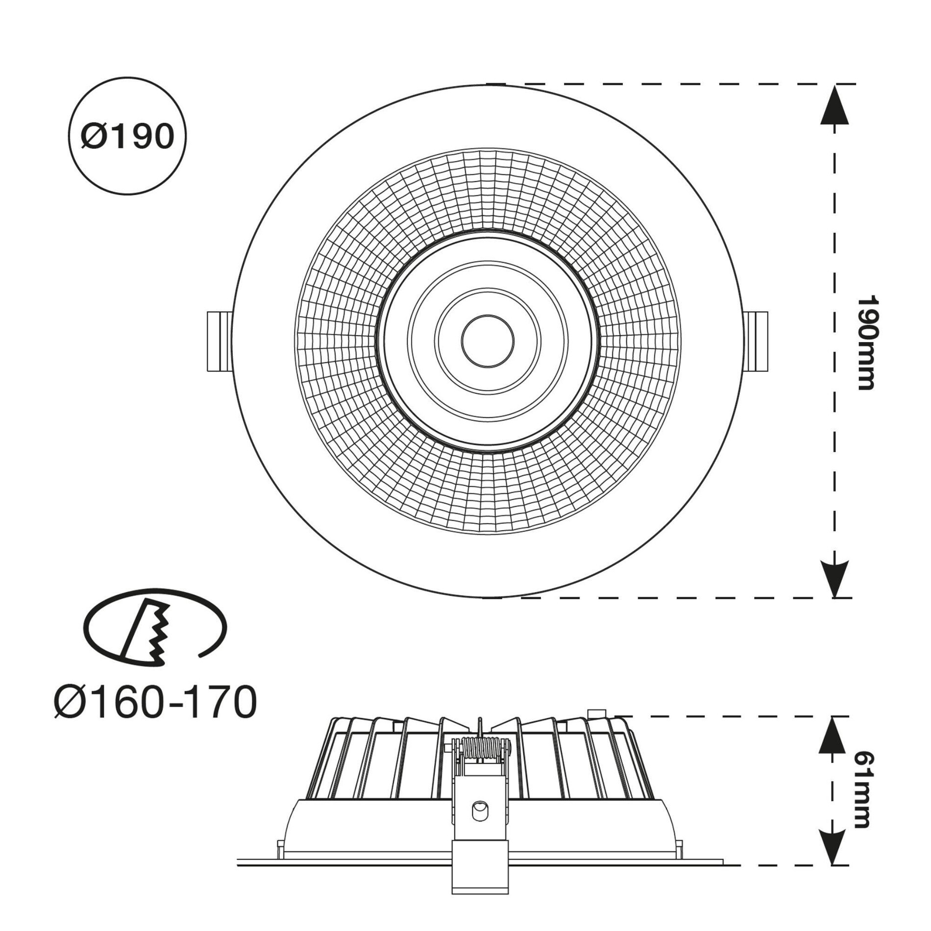 | Montážní otvor : | 170 mm |