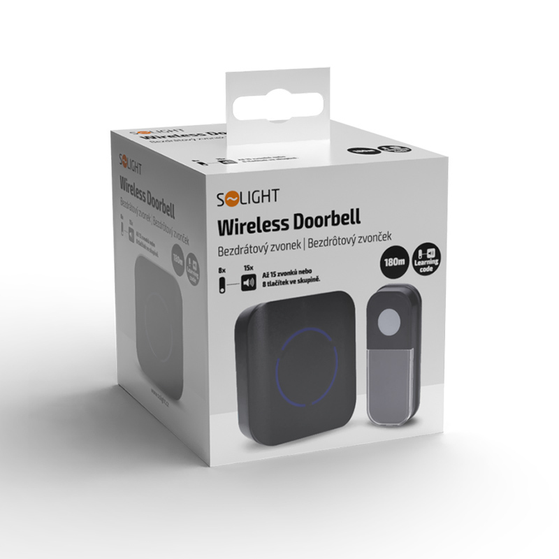 Kód / označení výrobce: Solight bezdrátový zvonek, do zásuvky, 180m, černý, learning code 1L82B
