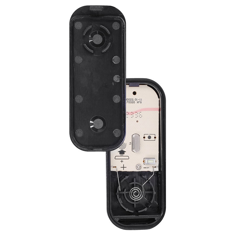 Řešení pro byty, rodinné domy i menší provozovny, kde je potřeba zvonění jednoduše doplnit nebo přidat další vstup. Hlasitost má 4 úrovně včetně tichého režimu (pouze blikání) a k dispozici je 36 melodií. Funkce „Learning code“ umožňuje spárování více prvků do jedné skupiny: k jednomu zvonku lze spárovat až 8 tlačítek a jedno tlačítko může být spárované až s 15 zvonky (na každém může být nastavená jiná melodie pro rozlišení vstupů). Tlačítko se uchycuje samolepicí podložkou nebo přes montážní otvory.