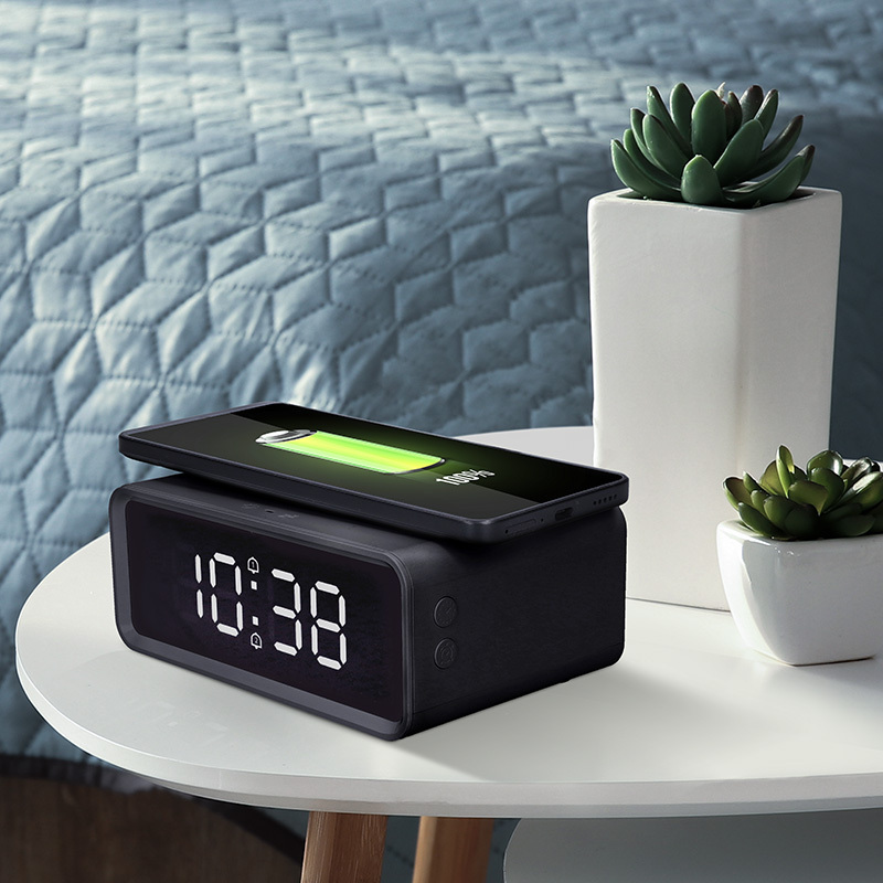 • budík s bezdrátovou nabíječkou kompatibilní se standardem Qi
