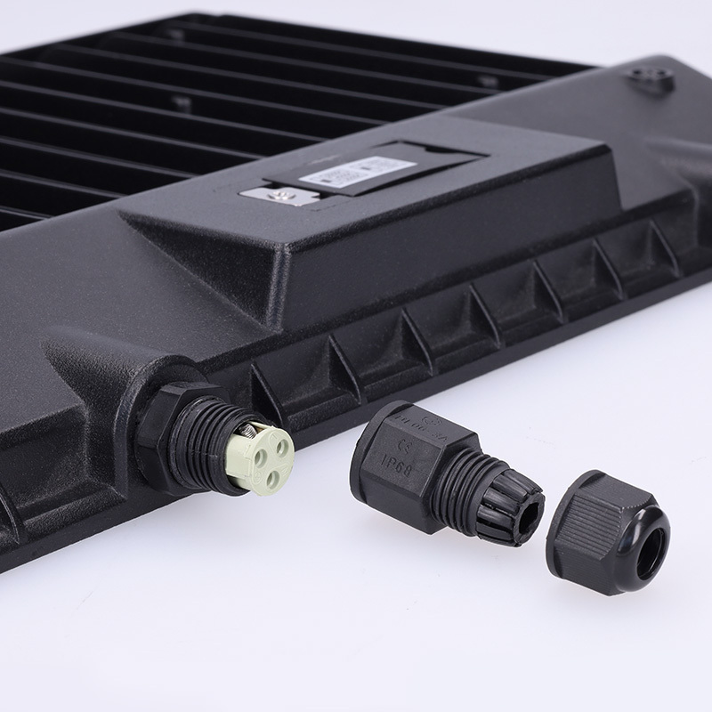 Krytí IP65 a voděodolný konektor umožňují venkovní použití i v náročných podmínkách. Reflektor je vybaven LED čipy s životností 25 000 hodin a poskytuje široký světelný kužel 120°, ideální pro rovnoměrné nasvícení plochy. Rozměry činí 320 × 230 × 30 mm, tělo je z odolného hliníku a elegantní černé barvy. Tento reflektor je robustní, flexibilní a efektivní řešení pro profesionální nasazení ve venkovních prostorách.