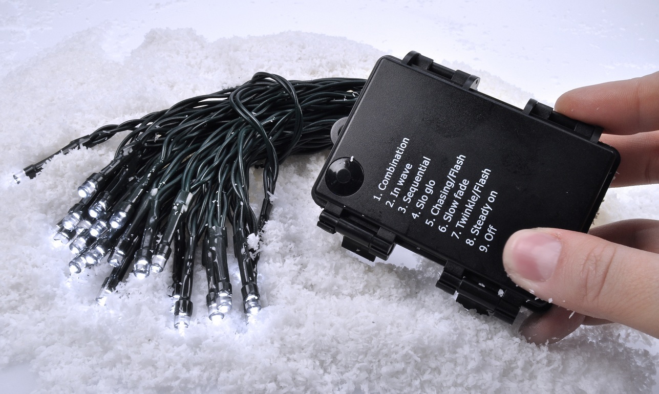 Řetěz je napájen třemi AA bateriemi (nejsou součástí) a jejich výdrž činí přibližně 72 hodin. Délka osvětleného kabelu je 5 metrů, vzdálenost mezi diodami je 10 cm, přívodní kabel měří 30 cm. Vhodné pro vnitřní i venkovní použití (IP44). Zelený kabel ladí s tradičními dekoracemi a světlo jemně vyniká. Dodáváno v barevné krabici – ideální i jako dárkové balení.