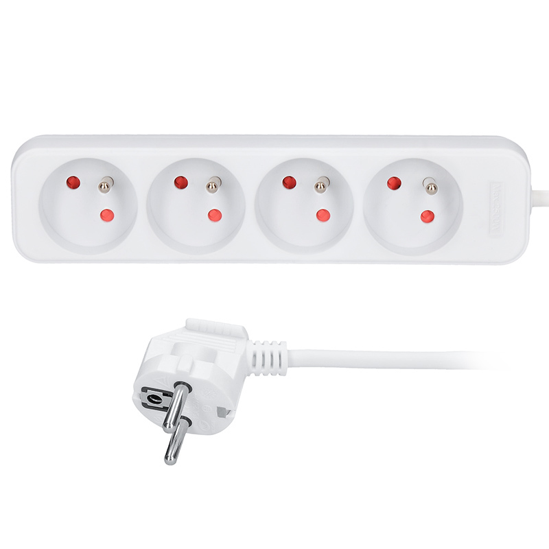 Praktický bílý prodlužovací kabel s délkou 2 metry a čtyřmi zásuvkami umožní přivést elektrickou energii tam, kde není k dispozici pevná zásuvka. Ideální pro domácí i kancelářské využití.