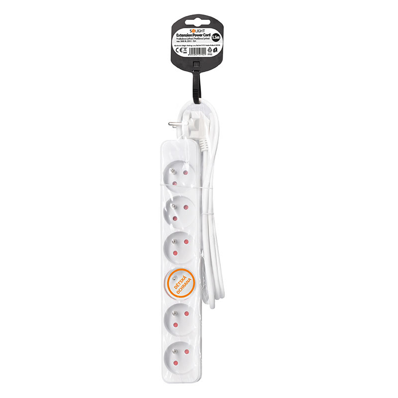 Praktický bílý prodlužovací kabel s délkou 1,5 metru a šesti zásuvkami umožní přivést elektrickou energii tam, kde není k dispozici pevná zásuvka. Ideální pro domácí i kancelářské využití.