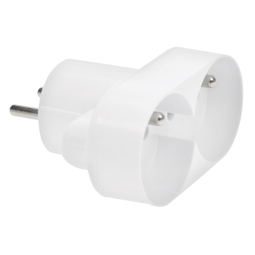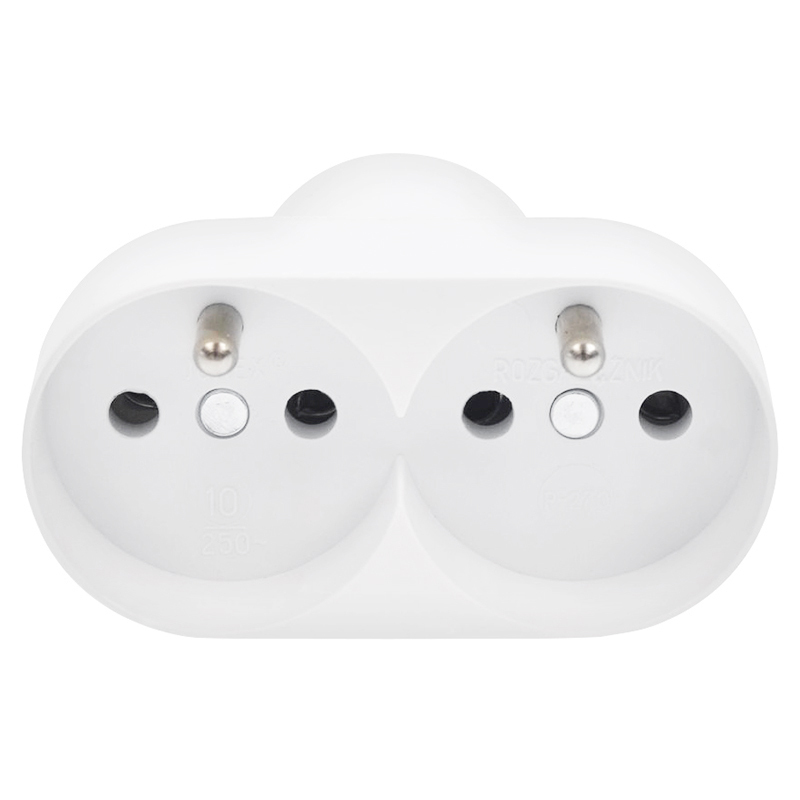 Kompaktní dvojnásobná rozbočka do zásuvky pro rychlé rozšíření napájení na dvě výstupní zásuvky. Hodí se pro běžné použití v interiéru a pomůže tam, kde v místě chybí volná zásuvka.