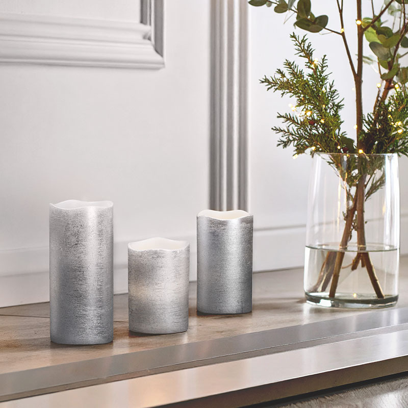 Svíčky mají různé výšky – 10 cm, 12,5 cm a 16 cm – a vytvářejí dynamickou dekoraci, která krásně vynikne na stole, poličce nebo slavnostní tabuli. Každá svíčka je napájena třemi AAA bateriemi (nejsou součástí balení) a díky kombinaci vosku a plastu vypadají velmi autenticky.
