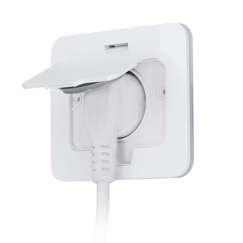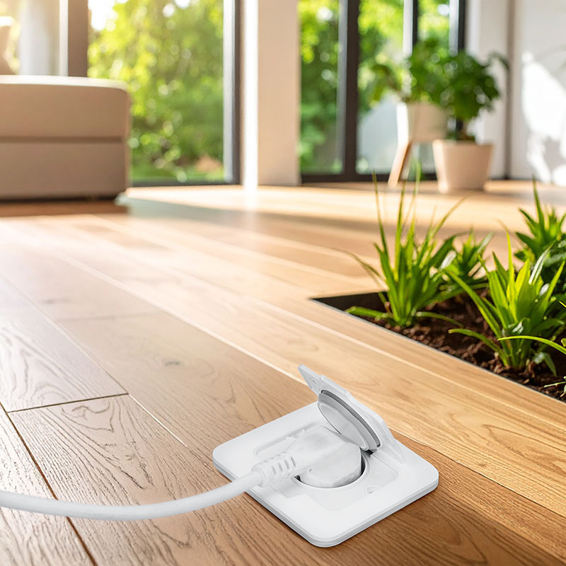 Řešení pro přivedení 230 V přímo do podlahy, pod omítku nebo do nábytku - typicky do teras, pergol, garáží, dílen, chodeb, kanceláří nebo technických prostor. Krytí IP55 a uzavřené pouzdro chrání vnitřní konstrukci před vlhkostí z okolí, proto se hodí i tam, kde hrozí stříkající voda nebo zvýšená prašnost. Dětská pojistka zvyšuje bezpečnost při instalaci v domácnostech.