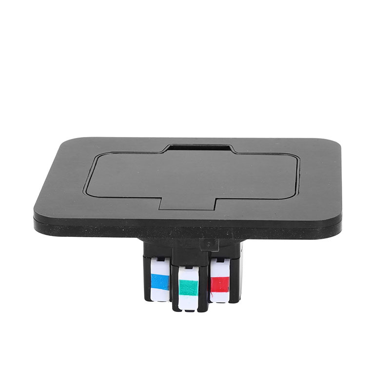 Vrchní kryt zásuvky je vyroben z odolné zinkové slitiny, která zajišťuje pevnost a zároveň ochranu proti korozi. Na povrchu nejsou viditelné žádné šrouby – montážní otvory zůstávají skryté pod víčkem. Díky tomu působí zásuvka elegantně a profesionálně a zároveň se snadno čistí.