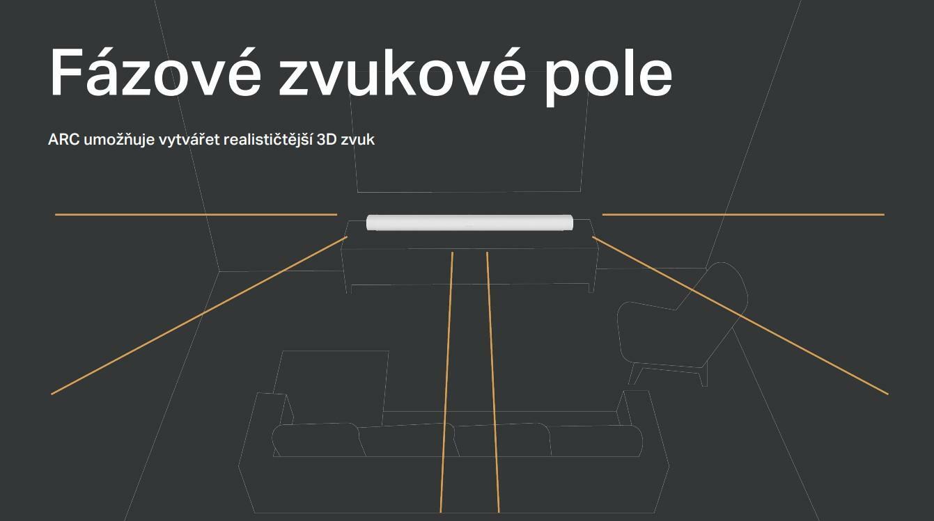 bezdrátový soundbar • Dolby Atmos • Wi-Fi • LAN port • mobilní aplikace • LED ukazatele • HDMI • optický vstup • dotykové ovládání • podpora Google Asistenta a Amazon Alexy