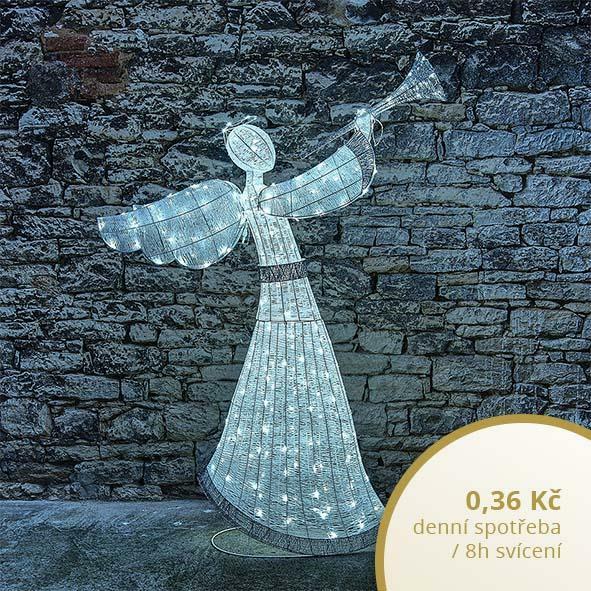 Exkluzivní světelný vánoční anděl za bezkonkurenční cenu. Tohoto krásného 2 m vysokého anděla je možné umístit jak v exteriéru, tak i v interiéru. Můžete si být jisti, že touto dekorací ohromíte své okolí. Jedná o velmi vkusnou vánoční dekoraci, která okouzlí svou křehkou krásou. Třpytivý povrch zaručuje nevšednost a zároveň navozuje pocit luxusu.