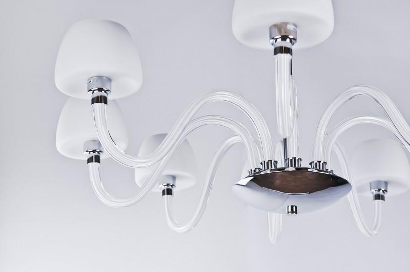 Závěsné svítidlo Gloria 8 z kolekce designového osvětlení značky Azzardo o průměru 85 cm a výšce 60 cm představuje dokonalou souhru kvalitních materiálů, který působí luxusním dojmem. Hodí se do moderních interiérů. Kvůli nízkému krytí IP20 není vhodné do místností s výskytem vyšší vlhkosti vzduchu. Jeho kulatá základna a tělo svítidla jsou vyrobeny z kvalitního kovu s leskle chromovou povrchovou úpravou. Z jeho středu vede 8 tvarovaných ramen s hladkými skleněnými difuzory v bílé barvě, které jsou osazeny paticí E14 o maximálním příkonu 8 x 40 W (zdroje nejsou součástí balení). Svítidlo je napájeno ze sítě na 230 V a vztahuje se na něj záruka 2 roky.